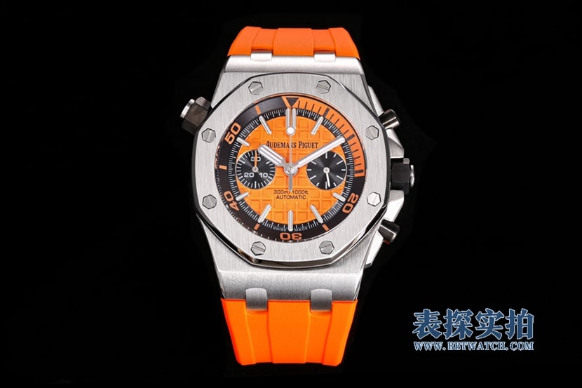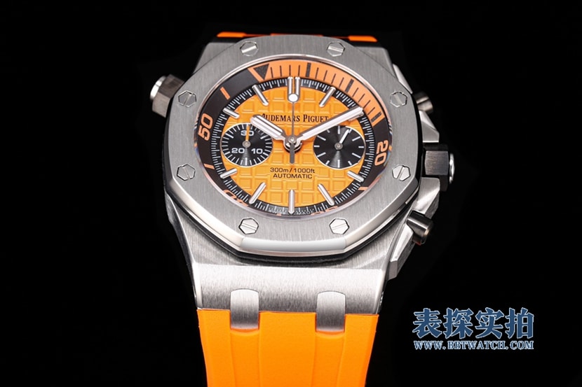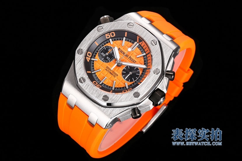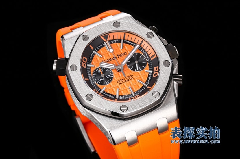 JJF厂出品的"Chêne royal离岸型"手表,以其精湛的工艺和优秀的材质,再现了经典的'70年代离海型'手表。这款手表采用了独特的橙色表盘和黑色副表盘,以及白金荧光立体时标和皇家橡树指针,配合黑色旋转内表圈和橙色潜水刻度,展现出独特的格调。